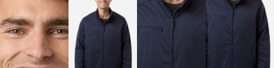 - Metal snap closures at collar stand, welt pockets and sleeve cuffs